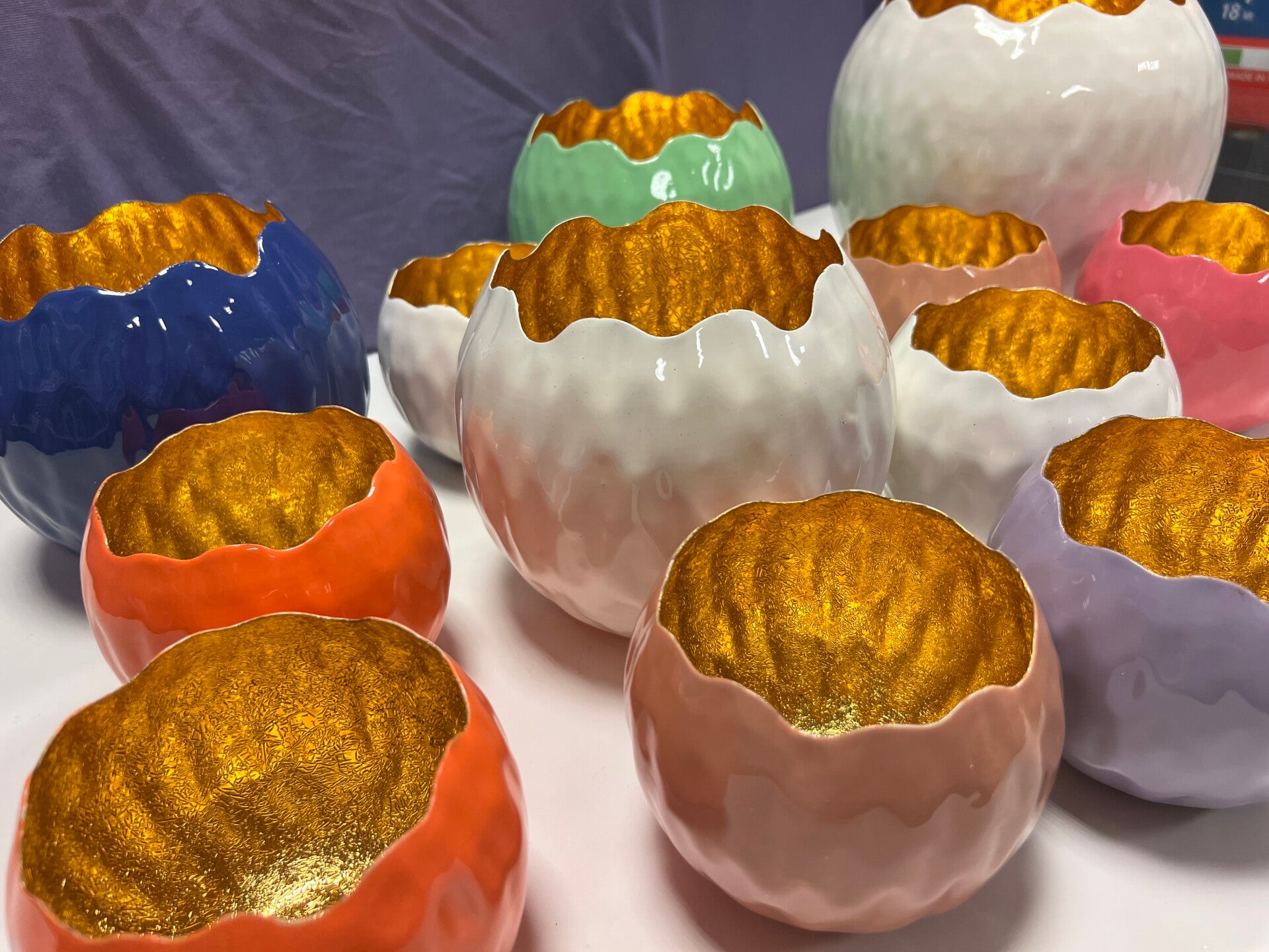 Gezelligheid met een theelicht en vrolijke kleuren. Dit windlicht heeft een gouden binnenkleur en is van metaal gemaakt. Buitenkant is glanzend. Verkrijgbaar in verschillende maten en kleuren.