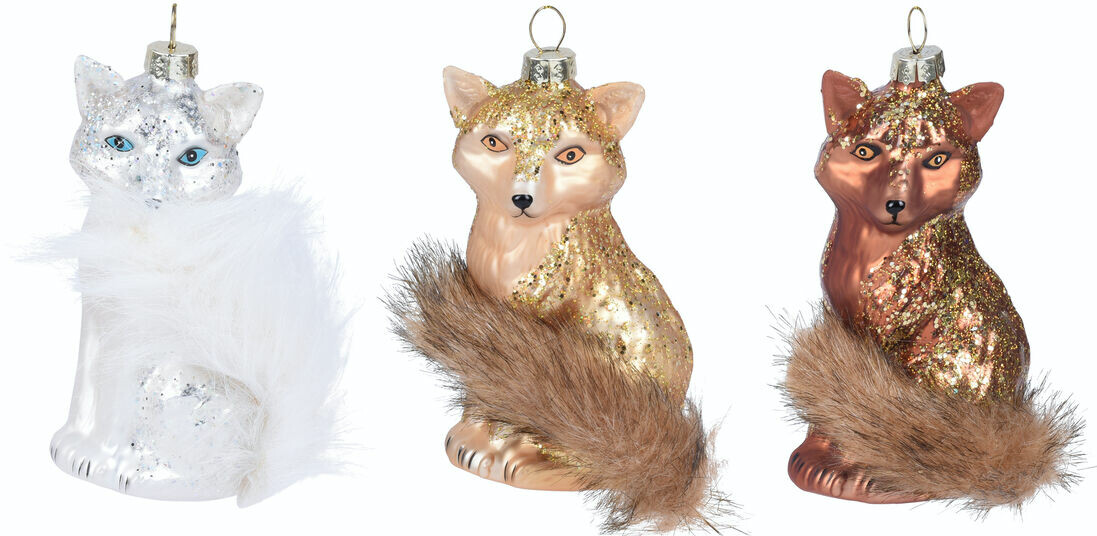 Dit schattige vosje met sierlijke bonte staart is een aanwinst voor je boom.Gemaakt van glas.