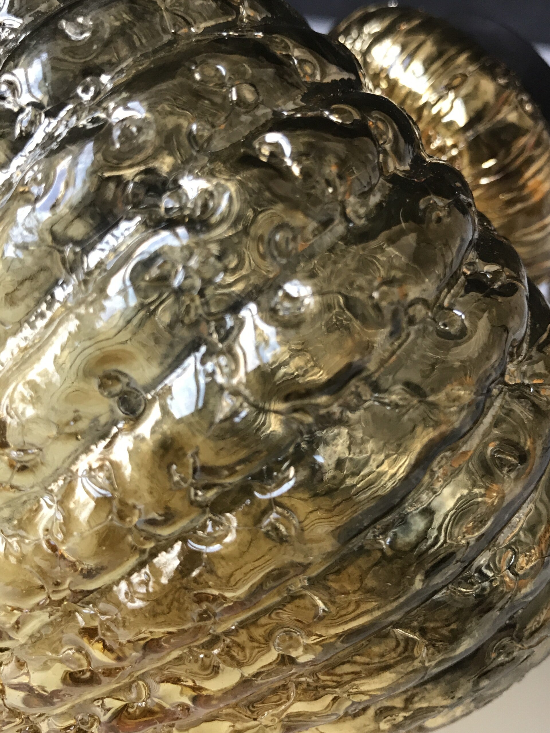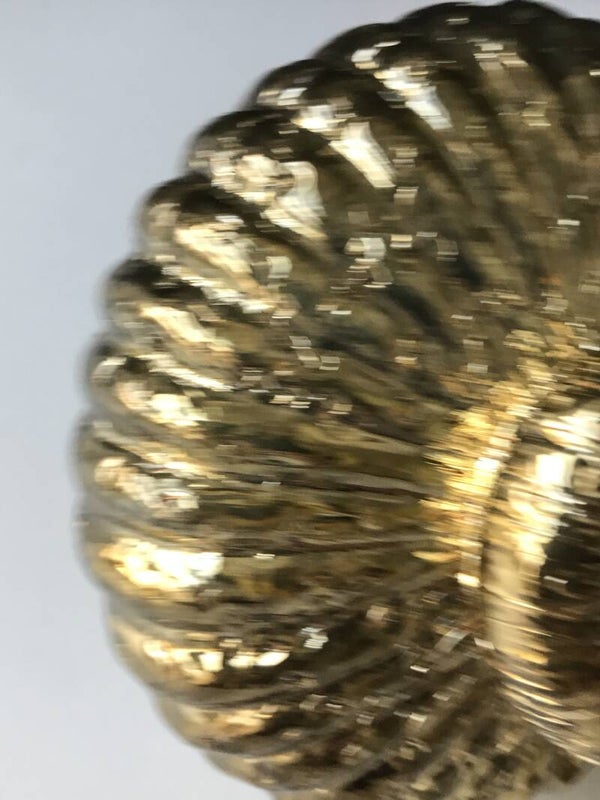 Dit schitternd exemplaar is gemaakt van antiek glas en heeft een voelbaar motief. Het koord is gemaakt van jute. Het is werkerlijk een plaatje.