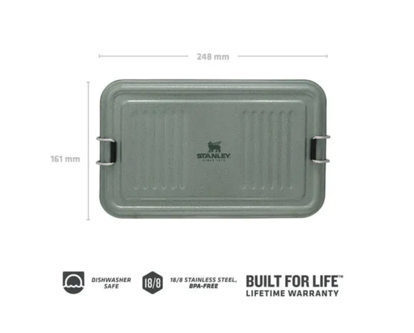 De Stanley The Useful Classic Box kan als lunchbox of als opbergdoos gebruikt worden. In deze box kan uw lunch, spullen en persoonlijke bezittingen in worden opgeborgen. De box heeft een veilige sluiting met grendels om het deksel gesloten te houden. De box is vaatwasmachinebestendig en gemaakt van roestvrijstaal.
